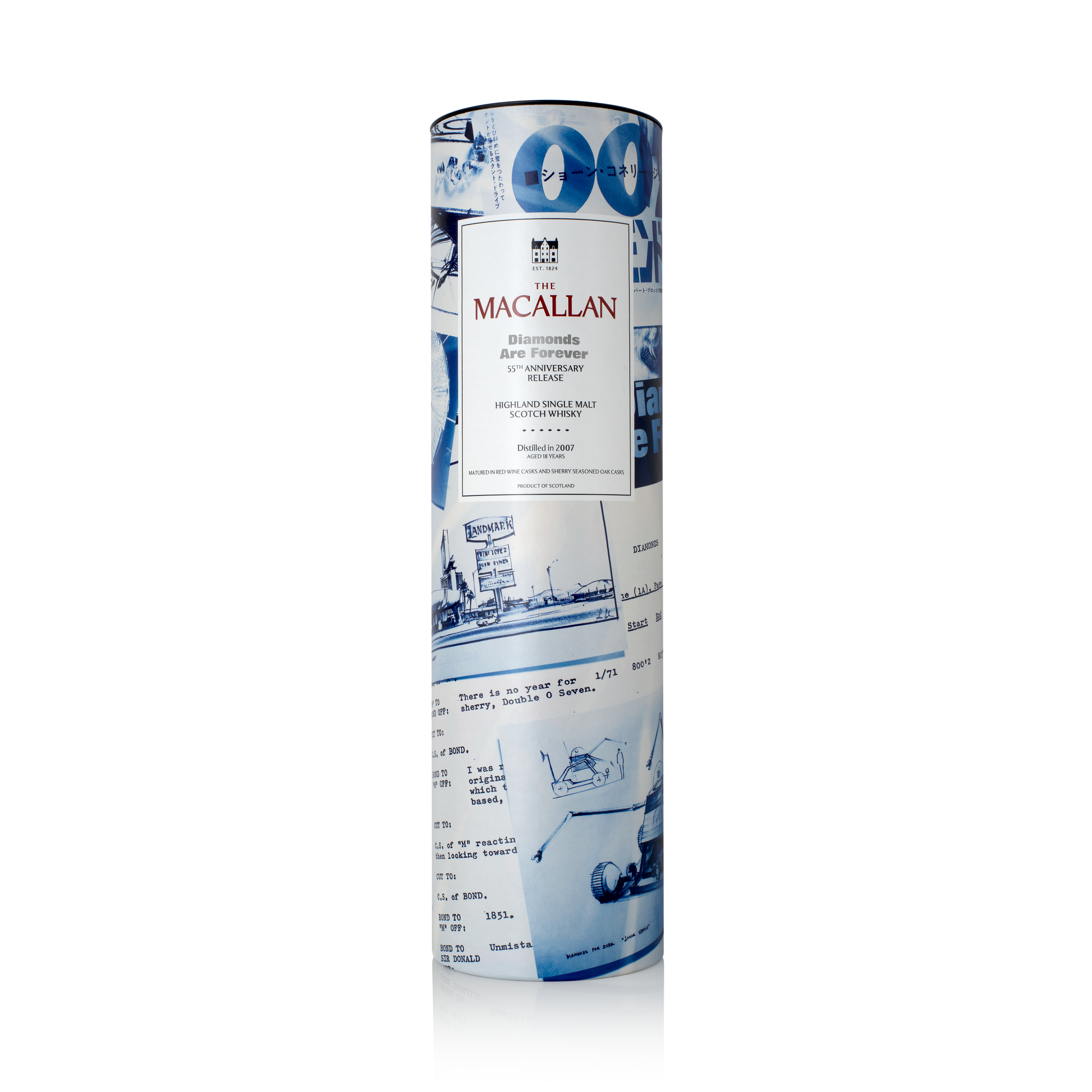The Macallan 18 Years Old – Diamonds Are Forever 55th Anniversary Release ist eine exklusive, streng limitierte Jubiläums-Edition des berühmten Speyside-Single-Malts, die das 55-jährige Jubiläum des James Bond-Films Diamonds Are Forever (1971) zelebriert. Die Abfüllung verbindet die Handwerkskunst und narrative Faszination von The Macallan mit dem kultigen Stil und der Filmgeschichte rund um 007 – inklusive Anspielungen auf Wein und Geheimnisse, die auch im Film eine Rolle spielen.